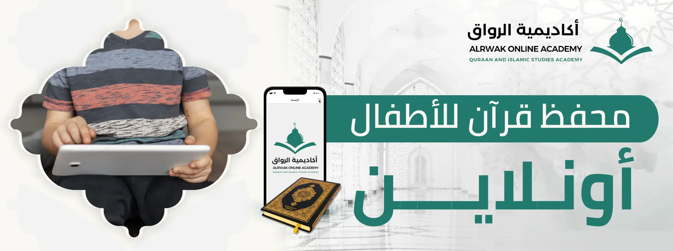 لا، كل ما يحتاجه الطفل هو جهاز متصل بالإنترنت (حاسوب لوحي أو هاتف) وسماعات أذن لضمان وضوح الصوت والتركيز التام. توفر أكاديمية الرواق المنصة التعليمية وكافة المواد البصرية والسمعية اللازمة.